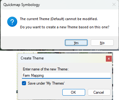 If you are in a Default theme and attempt to change the symbology, a message will prompt you to create a new theme.