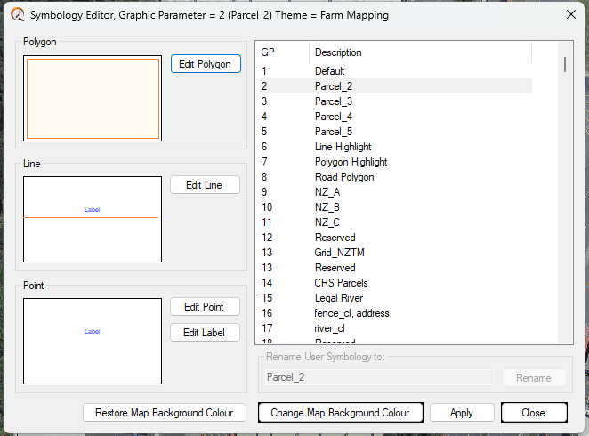 The symbology editor will then open allowing you to change symbology in your new Theme.