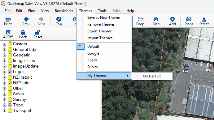 The Default, Google, Roads and Survey Themes are distributed with Quickmap and cannot be altered.